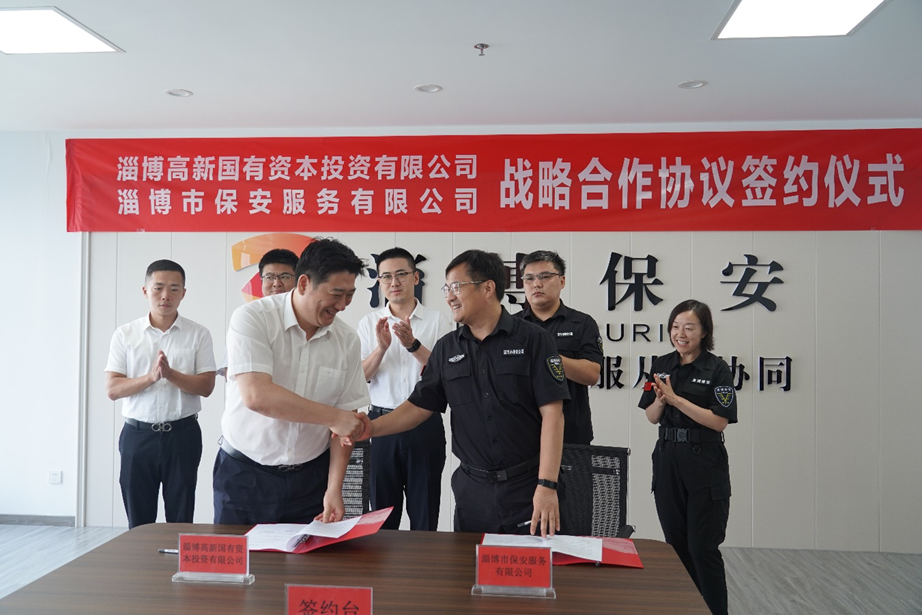 為深入貫徹落實(shí)“三提三爭”要求,7月20日上午,淄博市保安服務(wù)有限公司與淄博高新國有資本投資有限公司戰(zhàn)略合作協(xié)議簽約儀式在淄博市保安服務(wù)有限公司會議室舉行。淄博高新國有資本投資有限公司黨委書記、董事長劉博,淄博市保安服務(wù)有限公司黨委書記、董事長付志欣出席簽約儀式。