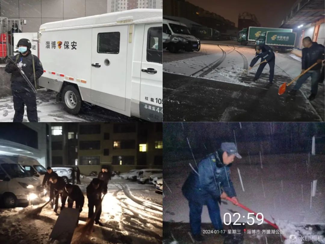 盡管寒風(fēng)刺骨,雪花紛飛,市保安公司全體員工提前到崗,把重點(diǎn)區(qū)域的積雪有序、高效的清理干凈,為人們的雪天出行保駕護(hù)航,讓社會(huì)感受到風(fēng)雪天淄博保安送出的一份溫暖。