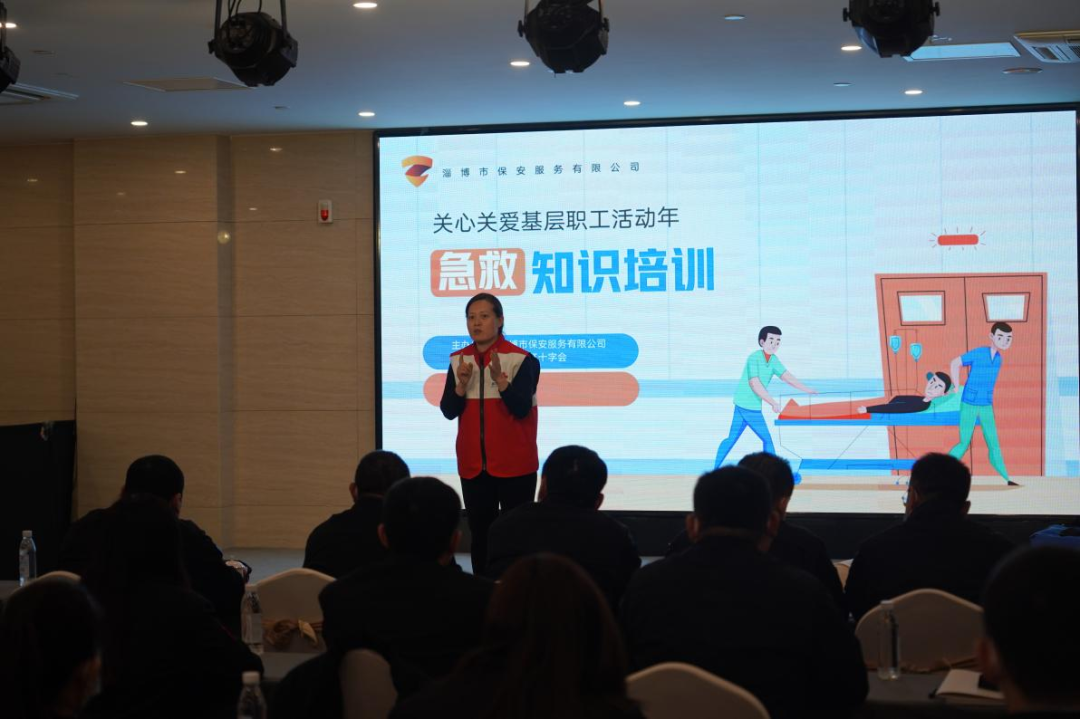 本次培訓(xùn)邀請淄博市紅十字會專業(yè)人員擔(dān)任授課老師,針對急救的意義、急救的黃金時間、急救時對病人的病情分析和處理方法等做了詳細(xì)介紹,并通過人物模型現(xiàn)場演練,講解了心肺復(fù)蘇的操作過程、AED的正確操作方法和氣道異物梗阻正確處理辦法。經(jīng)過生動的講解和實地操作,為學(xué)員們帶來了一堂實用的應(yīng)急救護(hù)知識培訓(xùn)。