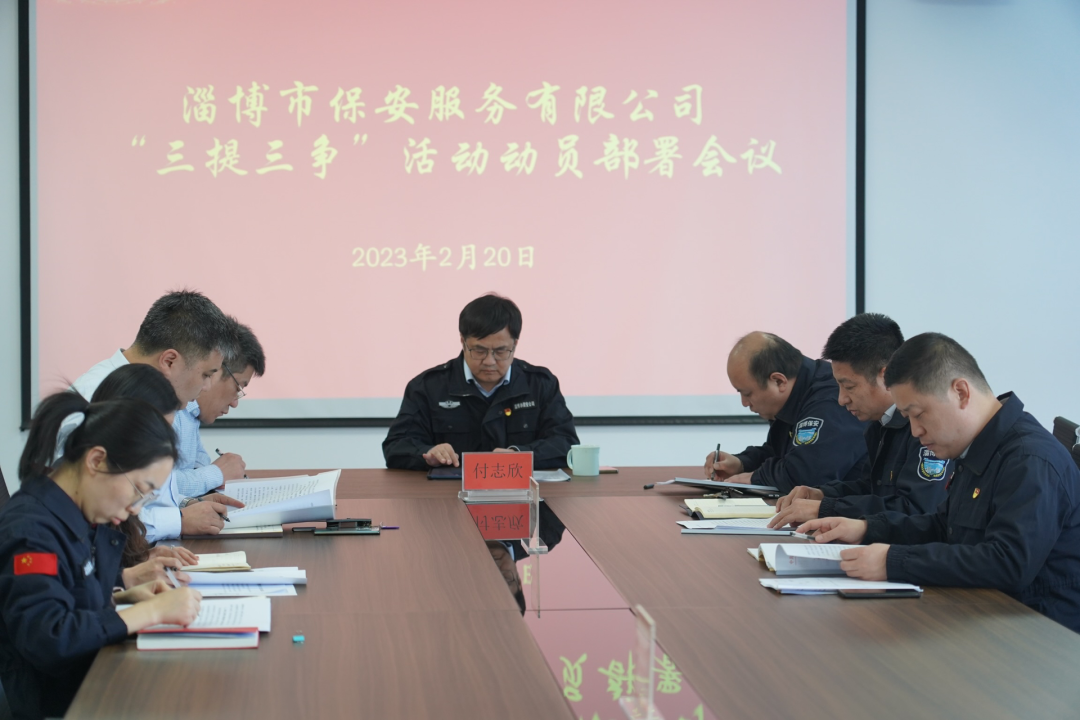 2月20日下午,淄博市保安服務(wù)有限公司召開黨委會(huì)議,學(xué)習(xí)全市“三提三爭”活動(dòng)動(dòng)員大會(huì)精神,傳達(dá)《市國資委黨委關(guān)于開展“三提三爭”活動(dòng)的通知》要求,并對下一步工作進(jìn)行研究部署。公司黨委班子全體成員參加會(huì)議,黨委書記、董事長付志欣主持會(huì)議。