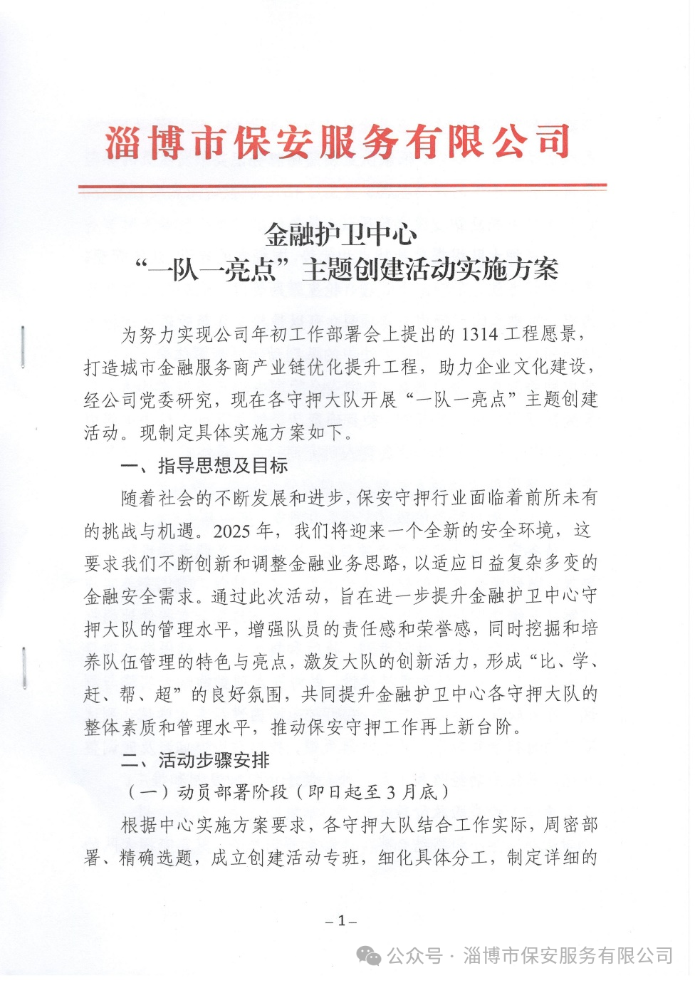 淄博市保安服務(wù)有限公司部署開展“一隊(duì)一亮點(diǎn)”主題創(chuàng)建活動