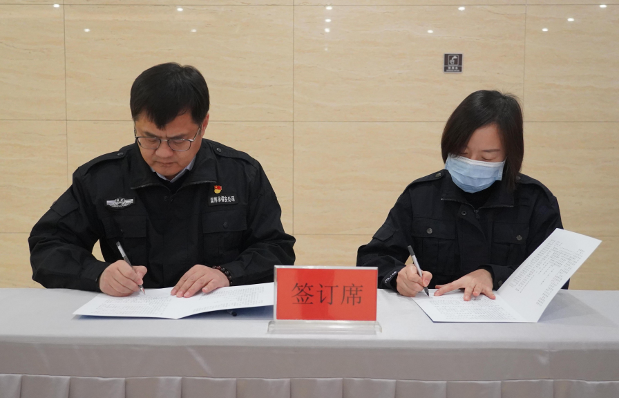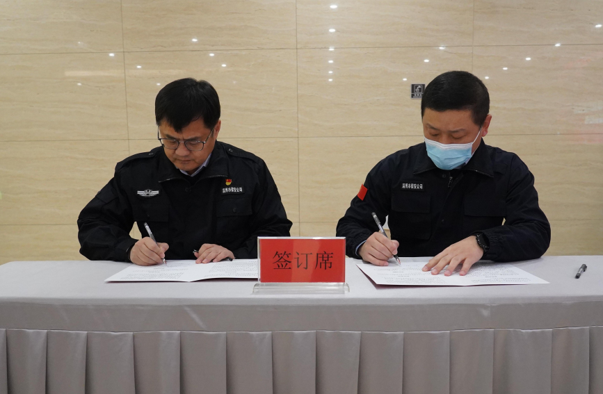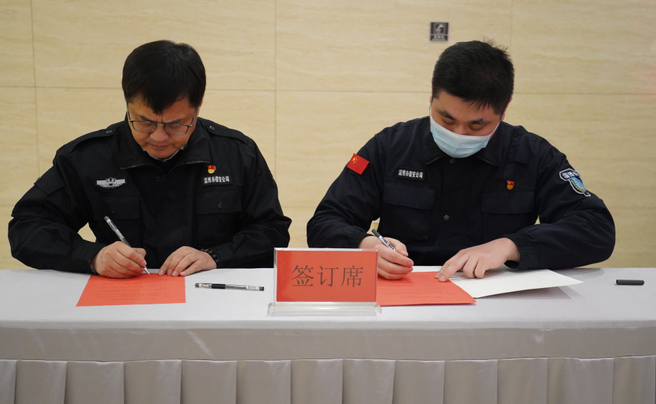 黨委書記、董事長付志欣同志與中層代表簽訂2023年度黨風(fēng)廉政建設(shè)目標(biāo)責(zé)任書、2023年度安全生產(chǎn)目標(biāo)責(zé)任書,與押運隊員代表簽訂持槍人員規(guī)范用槍承諾書。