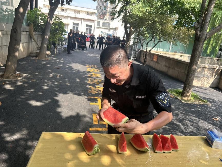 活動(dòng)設(shè)有“大象轉(zhuǎn)圈”、“吃西瓜比賽”等項(xiàng)目,隊(duì)員們以車組為單位進(jìn)行了激烈的角逐,大家一邊享受比賽的激情一邊品嘗西瓜的清爽,樂趣無窮。最終有兩組隊(duì)伍獲得優(yōu)勝獎(jiǎng),隊(duì)長張波將清涼解暑的冷飲送到獲獎(jiǎng)隊(duì)員手中,同時(shí)叮囑大家注意飲食,適當(dāng)補(bǔ)充淡鹽水,不要貪涼,保持夏季健康,以最好的狀態(tài)投入勤務(wù)工作。